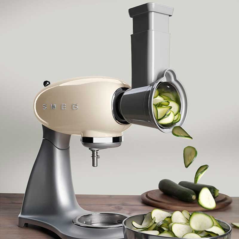 Pack de 4 accessoires grilles et plastifieuses compatibles avec les robots de cuisine Smeg 50's Style modèle SMF02 et SMF03.