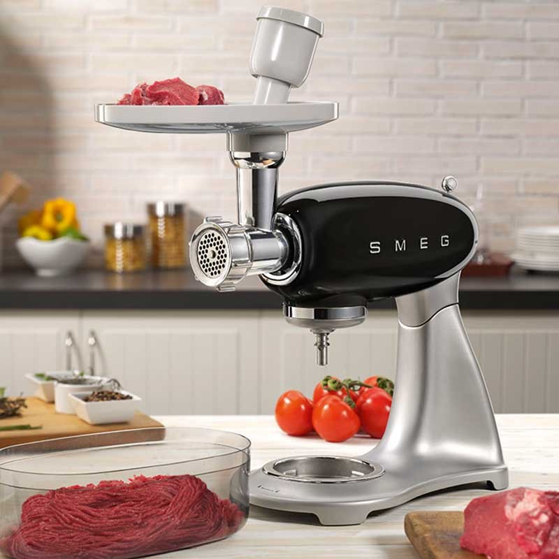 Accessoire hachoir à viande compatible avec les robots de cuisine de style Smeg 50 modèle SMF02 et SMF03. Dimensions: 170x80x150 mm.
