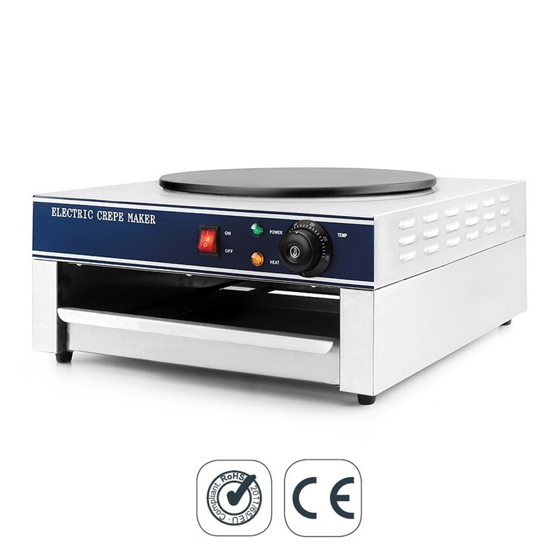Crepera électrique professional 3000 W avec régulateur de température de 50 à 250 ° C et une zone de fer non-bâton de 35 cm de diamètre.