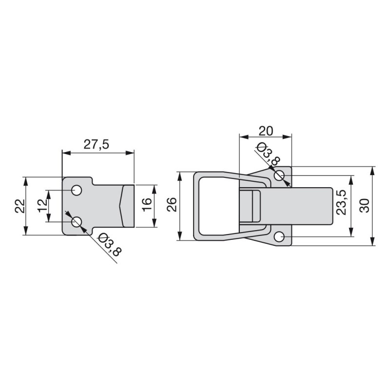 Fermeture de la bascule pour les meubles qui offrent un verrouillage mécanique de l'action de tirer sur un levier. Réglage du tendeur relie les panneaux et les réunit en toute sécurité. Votre montage est vissé au conseil d'administration à distance de l'installation de 52 mm.