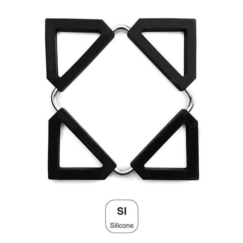 Dessous de plat-bas carré en silicone avec structure en métal. De mesure fermée: 12,5x12,5 cm de Mesure ouvert: 16 x 16 cm