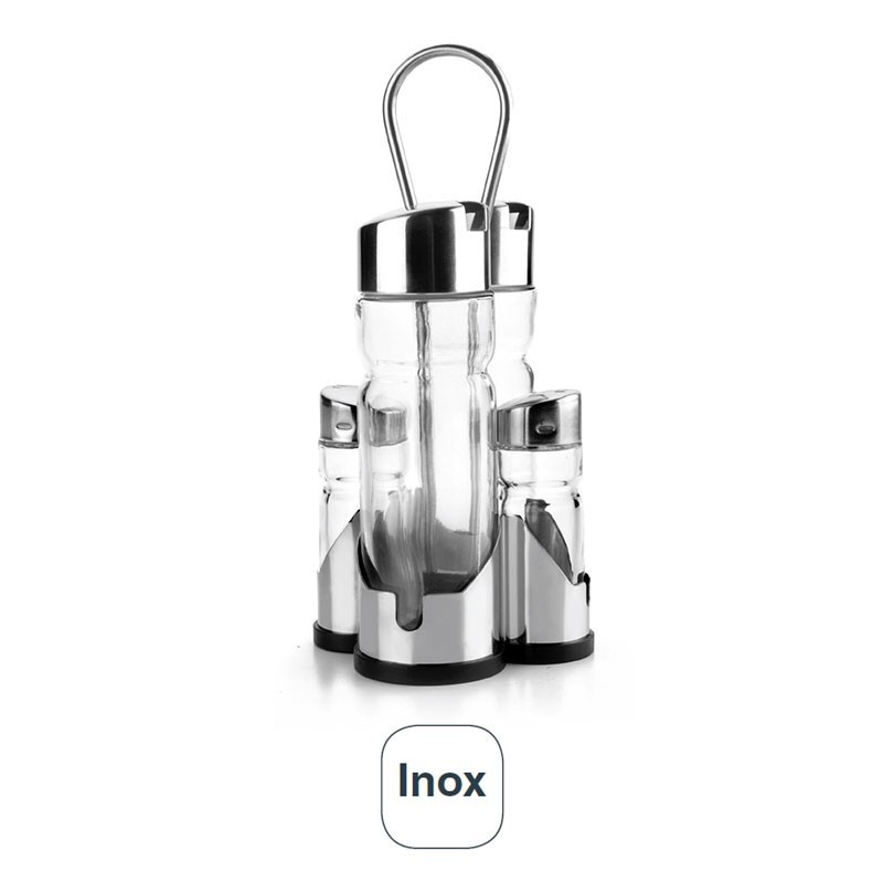 Jeu de vinaigre et de l'huile de 175 ml, du sel et du poivre shakers de 37,5 ml chacun, fait d'acier inoxydable et de verre.
