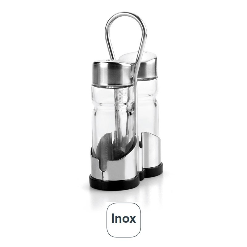 Jeu de sel et de poivre shakers de 37,5 ml de capacité pour chaque bol, fabriqués en acier inoxydable et le verre.