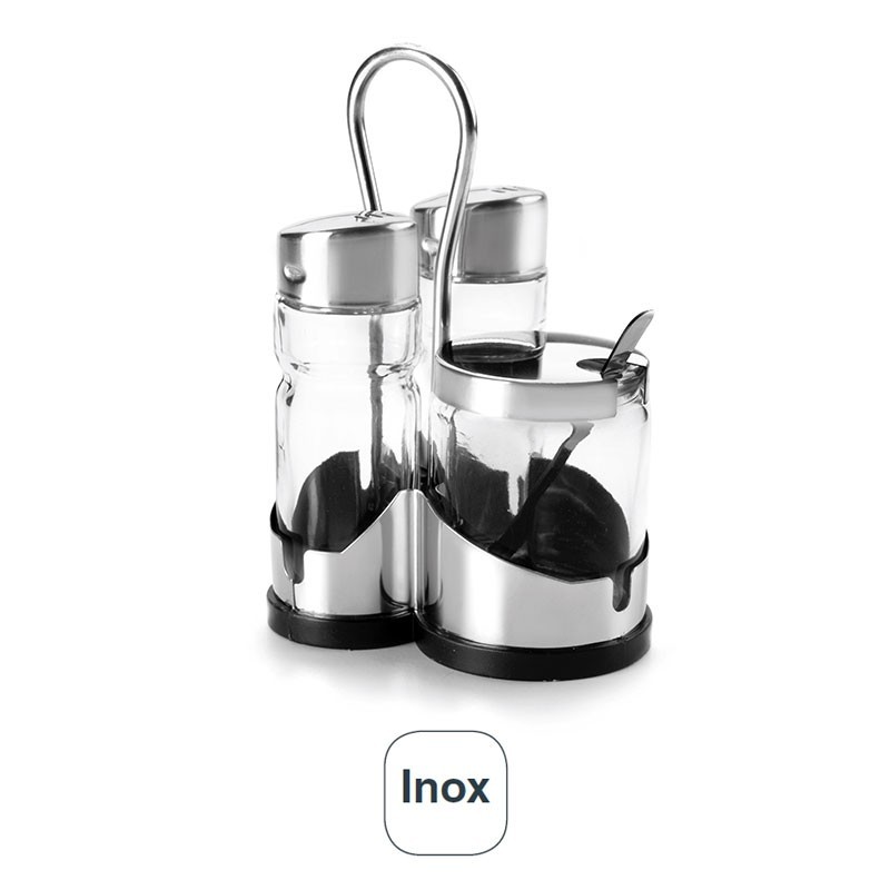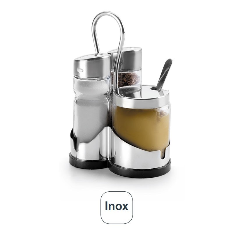 Jeu de sel et de poivre shakers de 37,5 ml de capacité pour chaque conteneur, mais le conteneur de moutarde 150 ml en acier inoxydable et le verre.