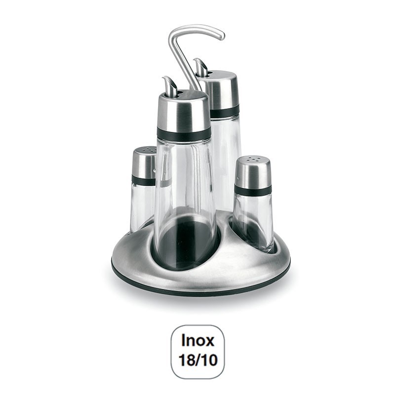 Il est composé de 2 pièces de 170 ml capacité de chacun et de 2 pièces de 30 ml chacune, plus un support, tous fabriqués en acier inoxydable 18/10 de première qualité et de verre.