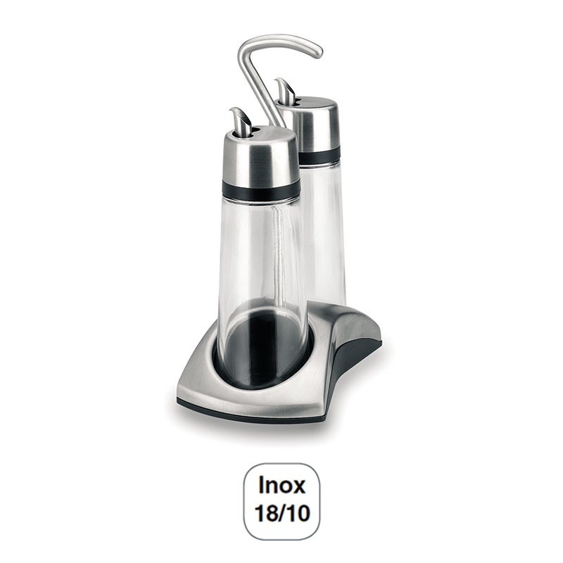 Jeu de l'huile burette de Série de Luxe 2 pièces avec support en acier inoxydable 18/10 de haute qualité et résistance à la corrosion.