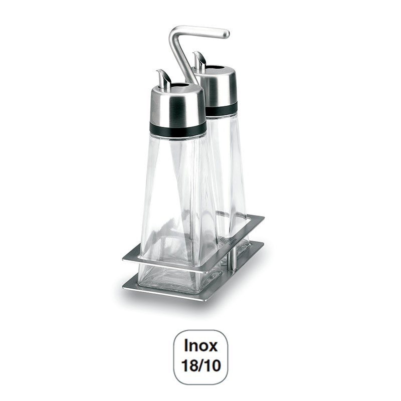 Jeu d'huile burette-Série Hyper-Luxe 2 pièces avec support en acier inoxydable 18/10 de haute qualité et résistance à la corrosion.