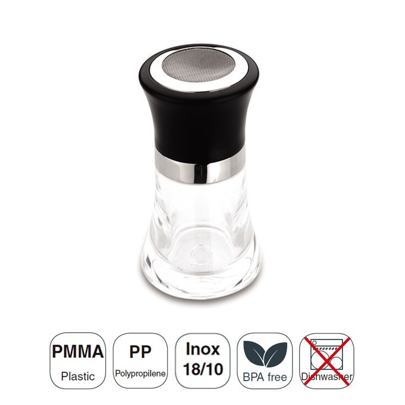 Étagère à épices en maille faite de plastique sans bisfenoles de 7 cm de diamètre et 12,5 cm de haut, avec un couvercle en polypropylène et en acier inoxydable 18/10.