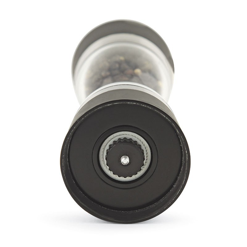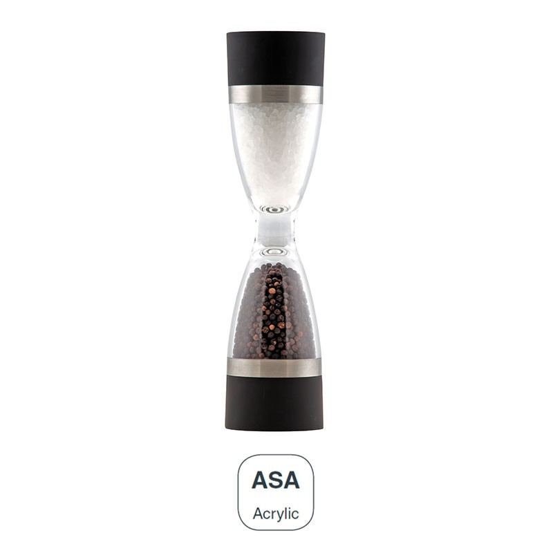 Ponceuse 2 en 1 sel et poivre 6x18 cm fabriqué en acrylique avec un mécanisme en céramique de haute résistance et de qualité. Surface antidérapante sur le haut et le bas.