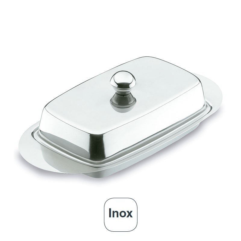 Source avec couvercle pour le beurre, 11,5 x 22,5 cm et 6,5 cm de hauteur, en acier inoxydable de haute qualité et de la résistance à la corrosion.