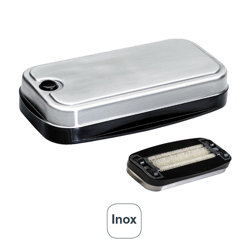 Brosse pour ramasser les miettes de pain de la table facilement fabriqués en acier inoxydable. Mesures: 9,5x16,5x4 cm