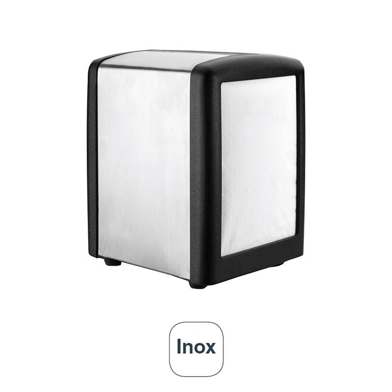 Porte-serviettes de bar en acier inoxydable, matériau lisse, non poreux et très hygiénique qui offre une excellente résistance à la corrosion, et thq avant en plastique noir pour lisser les bords.