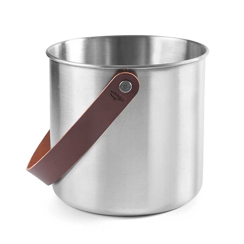 Enfriabotellas en acier inoxydable 18/10 avec un design élégant avec une finition brossée avec un cuir de la poignée de transport pour un transport facile.