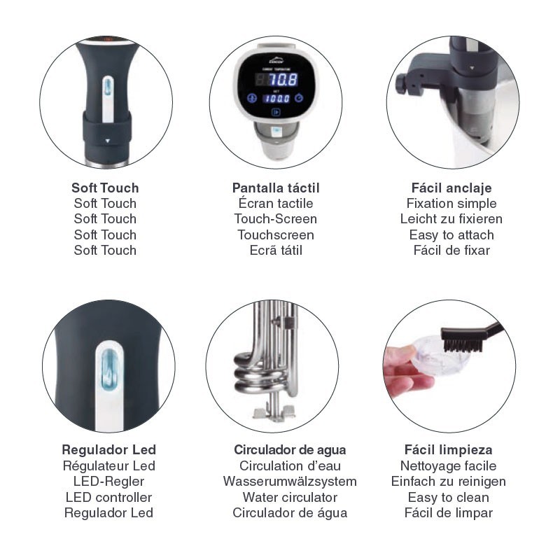 Cuiseur Sous Vide électrique, à basse température modèle Gastronomique portable 800 W pour 15 litres de capacité et une vitesse de 8,5 litres par minute.