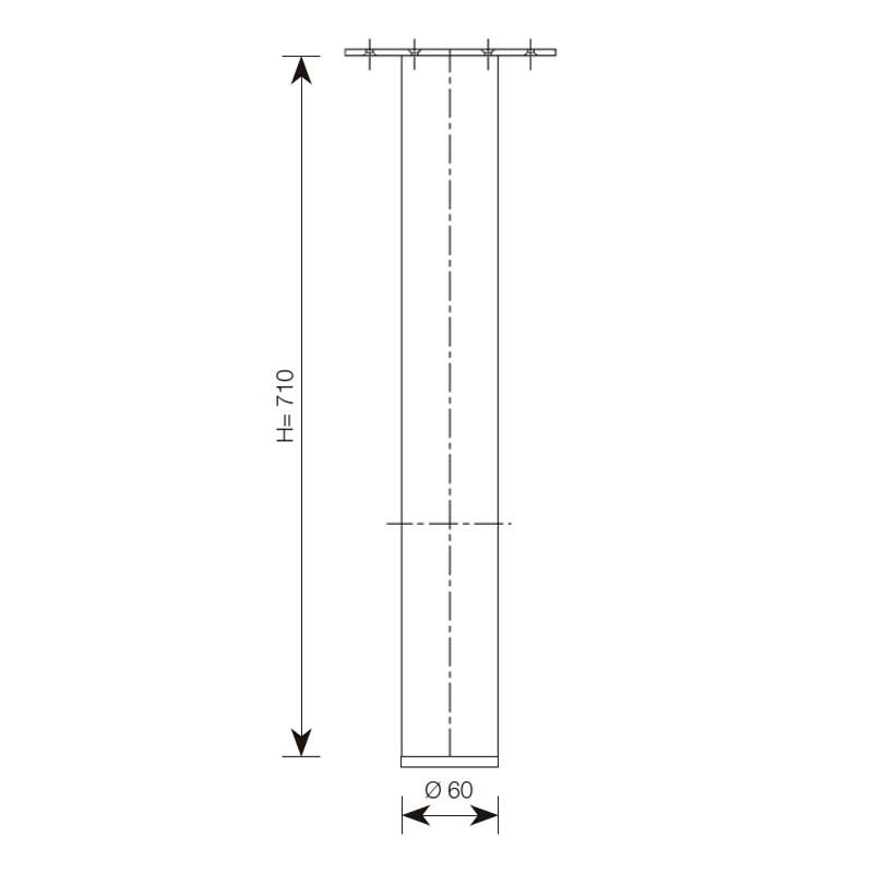 Cette pied mesure 710 mm de haut et comprend un ajusteur de pied inférieur avec un réglage de 45 mm.