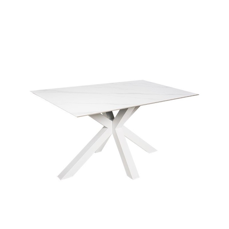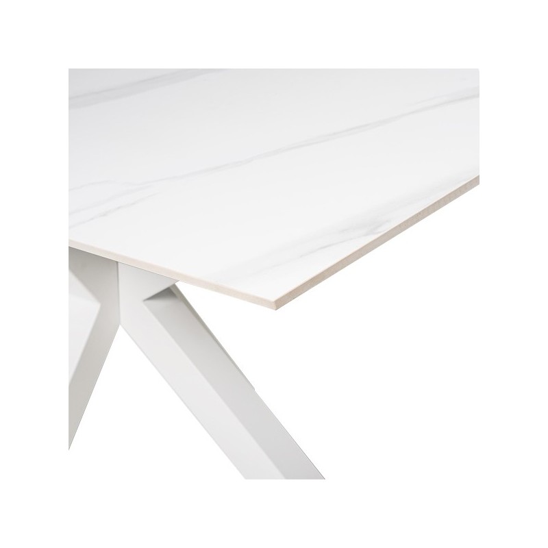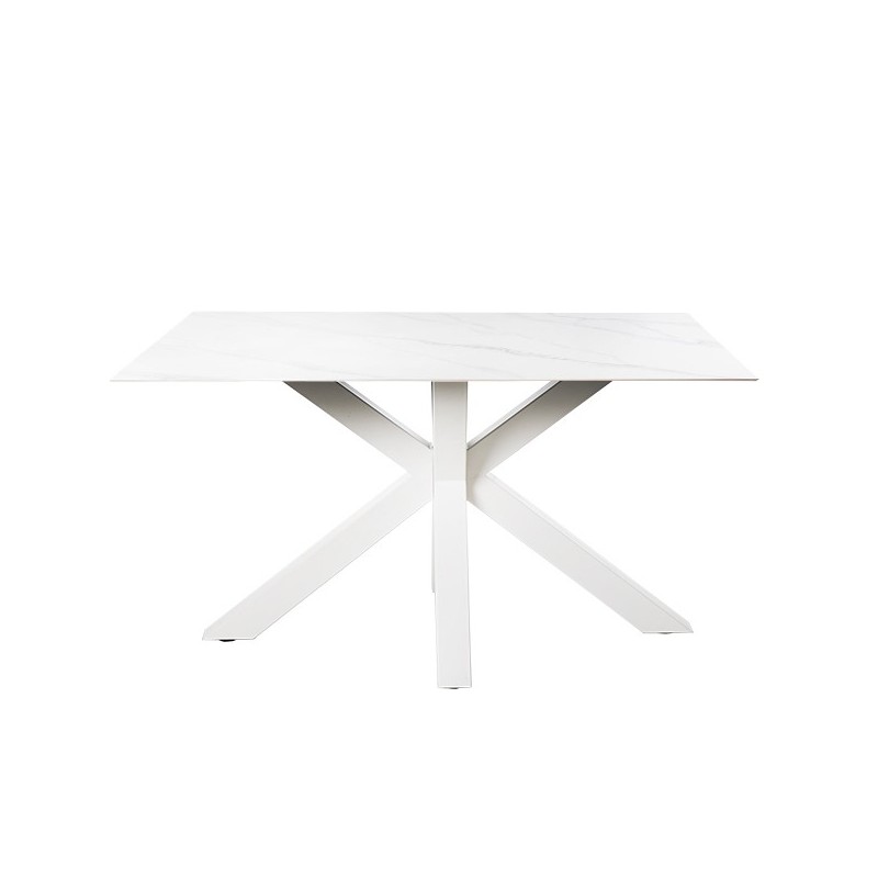 Avec un plateau en porcelaine avec une couche de verre trempé, cette table est résistante et facile à nettoyer, avec une finition qui imite le marbre pour une touche d'élégance. Les pieds épais en métal entrecroisés lui confèrent stabilité et un aspect artistique.