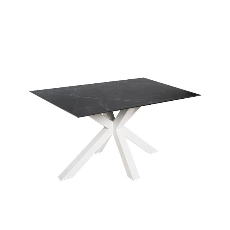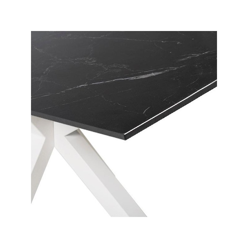 Table JOYCE 140 noir/blanc : durabilité, esthétique et fonctionnalité dans un meuble avec plateau en porcelaine et verre trempé, idéal pour tout espace.