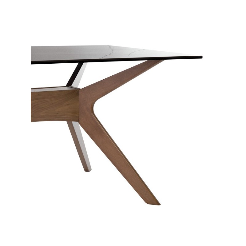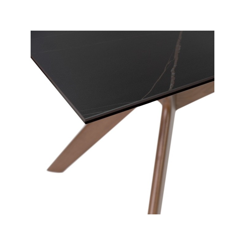 Table fixe ELOISE 140 : élégante et durable, avec un plateau en porcelaine et verre trempé. Idéale pour des espaces modernes et sophistiqués.