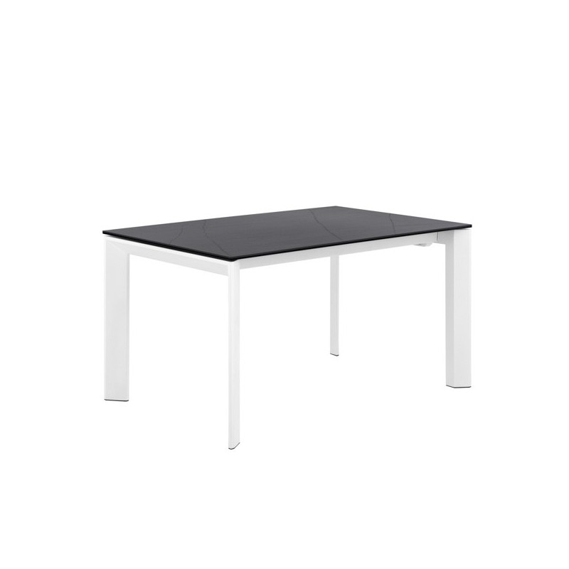 Découvrez la table extensible élégante et fonctionnelle TAMARA 160 en noir et blanc, un meuble au design moderne qui s'adapte à vos besoins d'espace. Fabriquée en acier de haute qualité avec un plateau en céramique noire sahara, cette table est parfaite pour votre salle à manger ou cuisine.