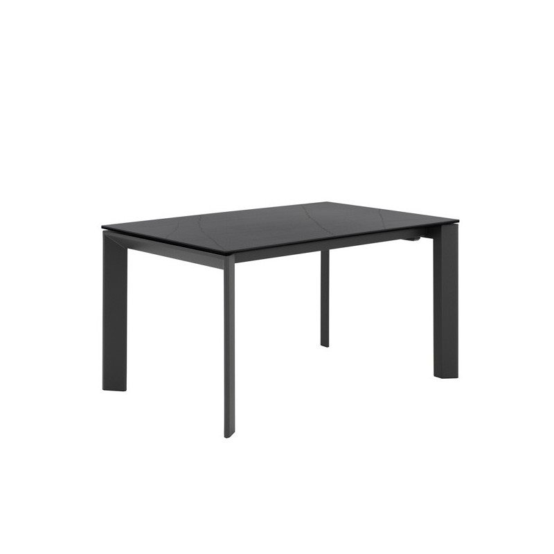 Découvrez la table extensible TAMARA 160 en noir/noir, élégante et fonctionnelle, un meuble au design moderne qui s'adapte à vos besoins d'espace. Fabriquée en acier couleur anthracite avec un plateau en porcelaine noir sahara, cette table combine résistance et style en un seul produit.