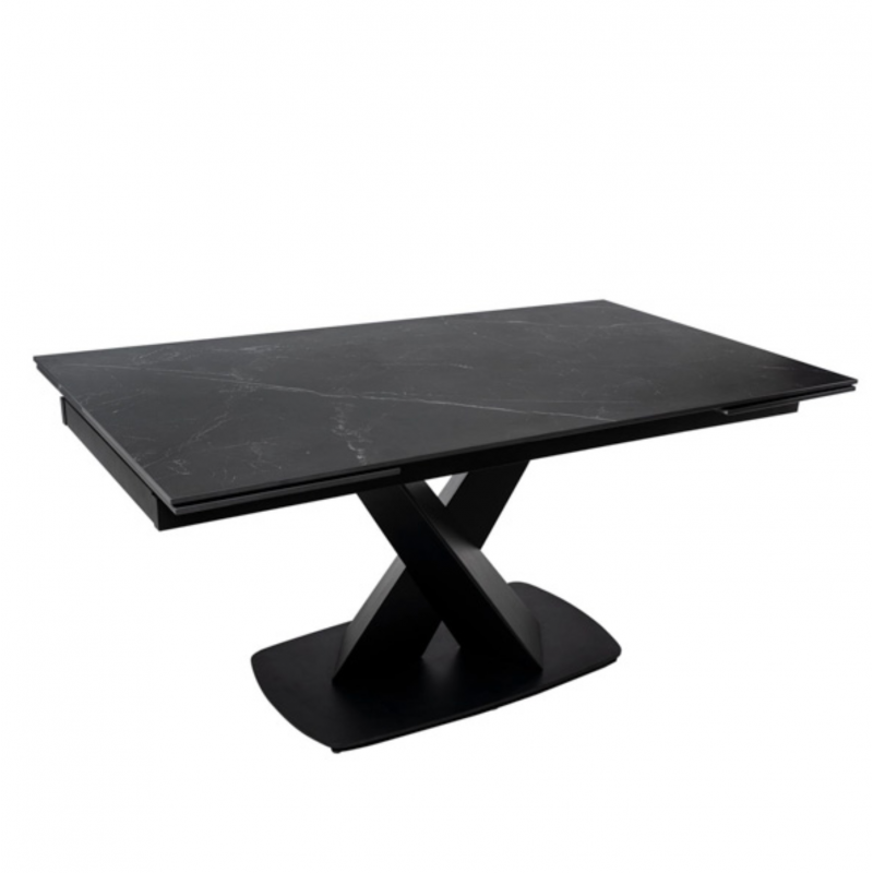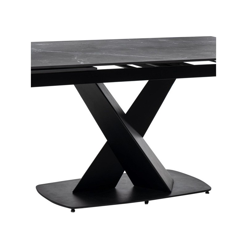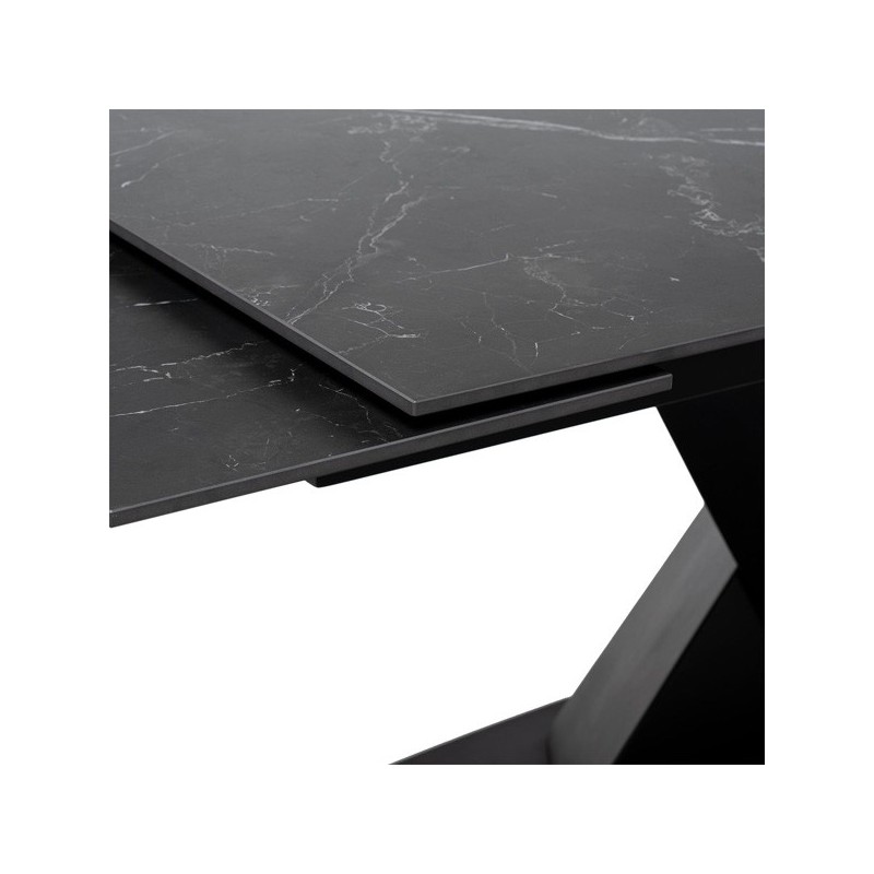 Table extensible VALERI 160 en noir/noir. Porcelaine résistante, nettoyage facile. Dimensions : 160x90 cm, extensible à 200-240 cm. Style, qualité et fonctionnalité.