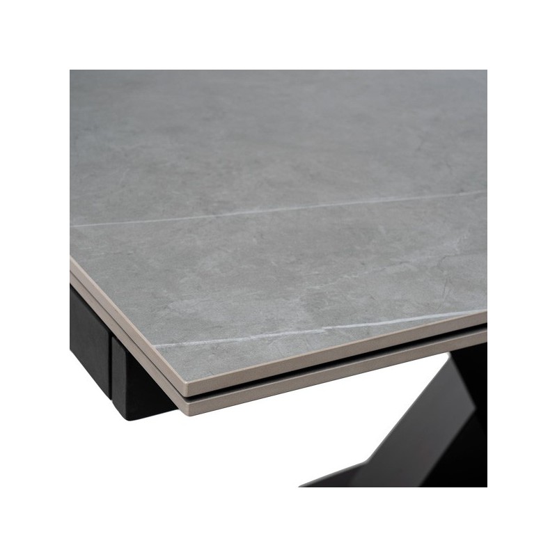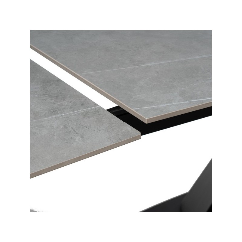 Table extensible VALERI 160 gris/noir : élégante, fonctionnelle et polyvalente. Résistante en porcelaine, design moderne et extensible à 200-240 cm.