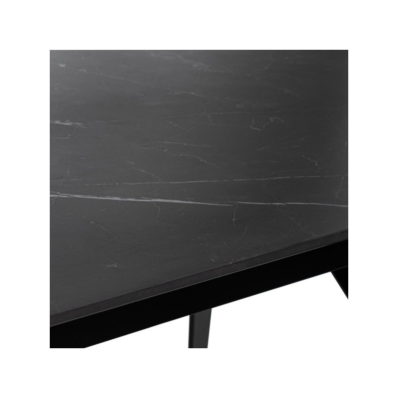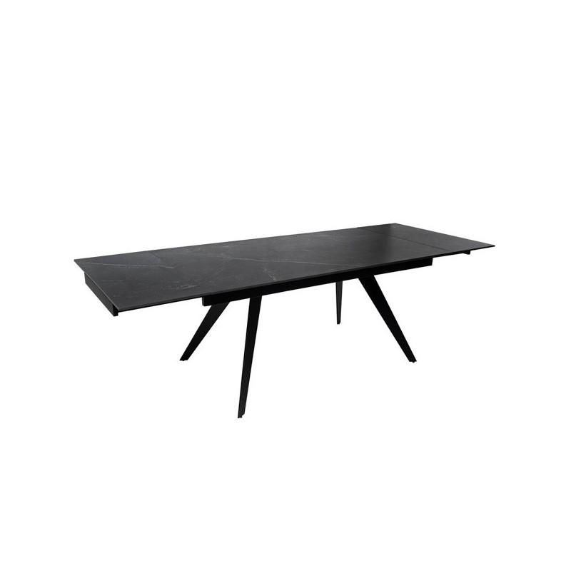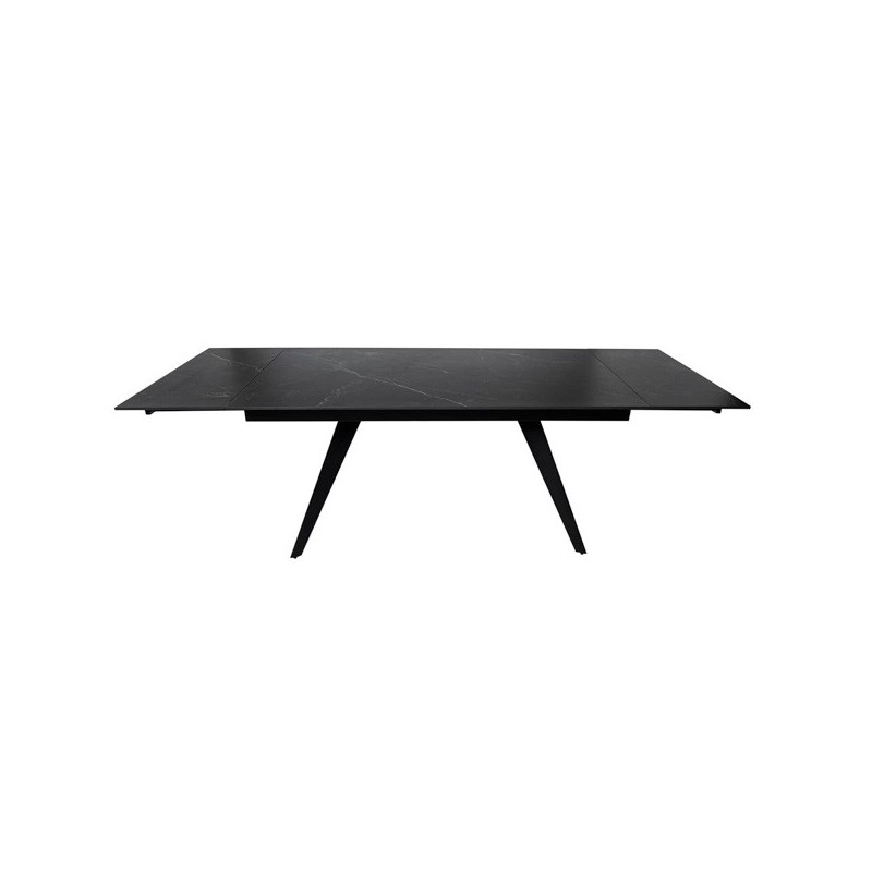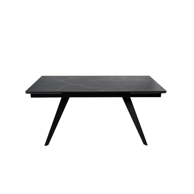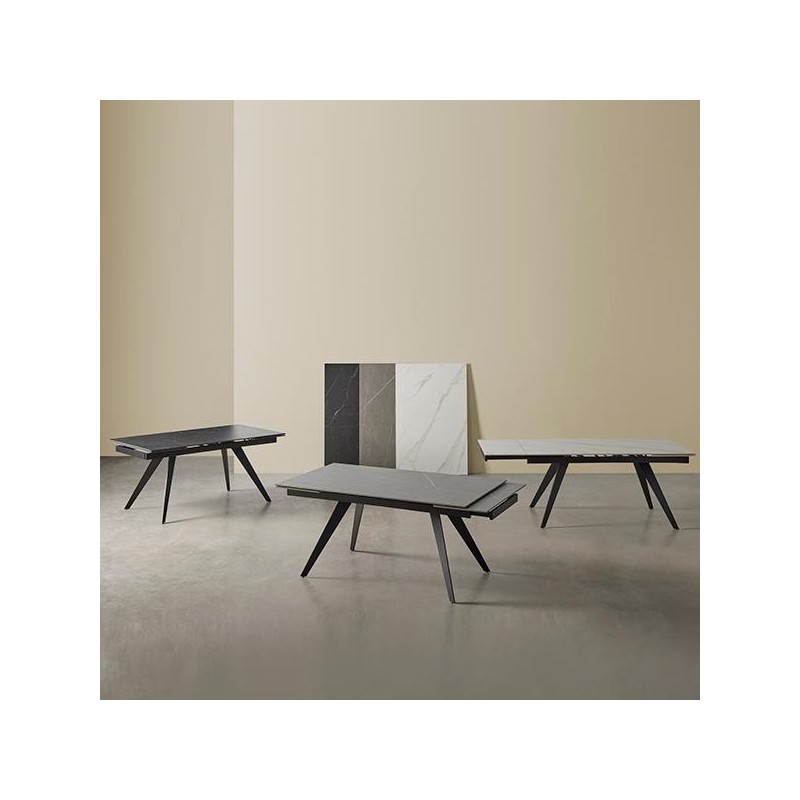 Table extensible KELLY 160 en céramique blanche et métal noir. Polyvalente, résistante et élégante. Idéale pour les réunions et événements à la maison.