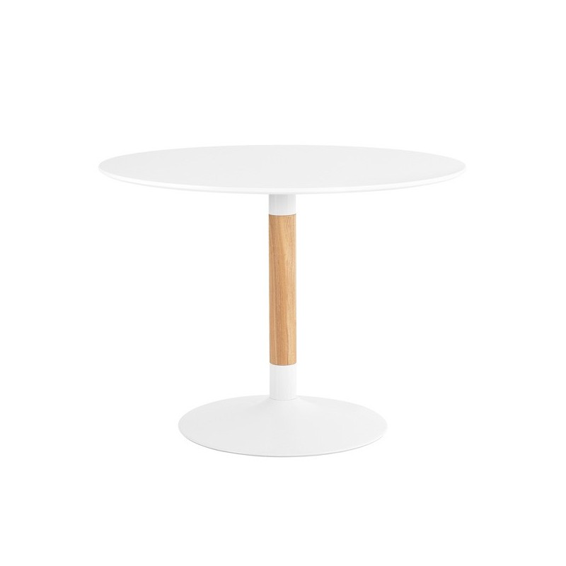Découvrez notre table fixe MIRA 100 en blanc et chêne, un meuble élégant qui combine parfaitement fonctionnalité et style. Avec son plateau rond de ø 100 cm et une épaisseur de 20 mm en MDF laqué blanc, cette table est idéale pour tout espace. Son pied central en bois et métal lui confère stabilité et une touche moderne qui ne manquera pas d'attirer l'attention dans votre maison.