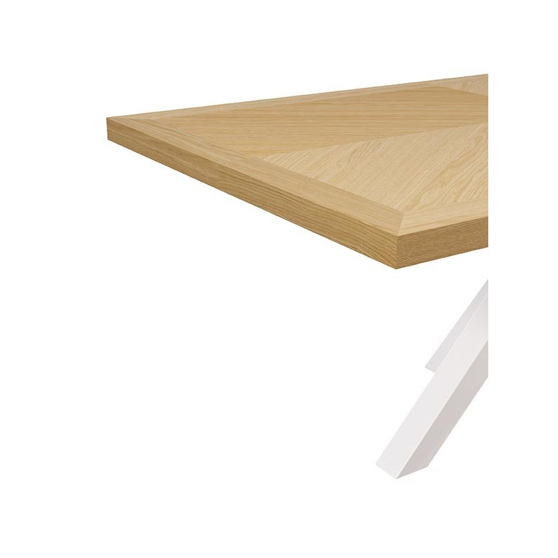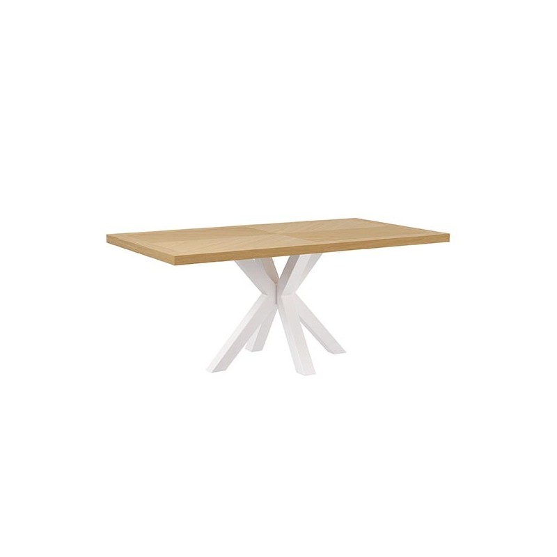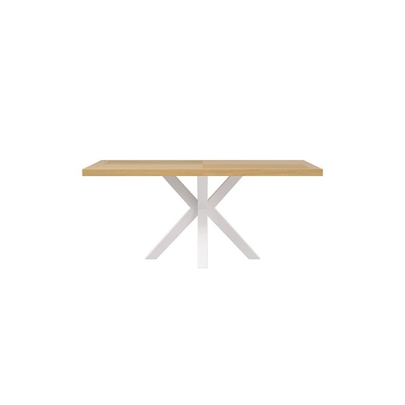 Table fixe ELAINE 140x90 chêne/blanc : élégance et fonctionnalité dans un design unique. Combine le chêne et le métal pour un style durable et sophistiqué.