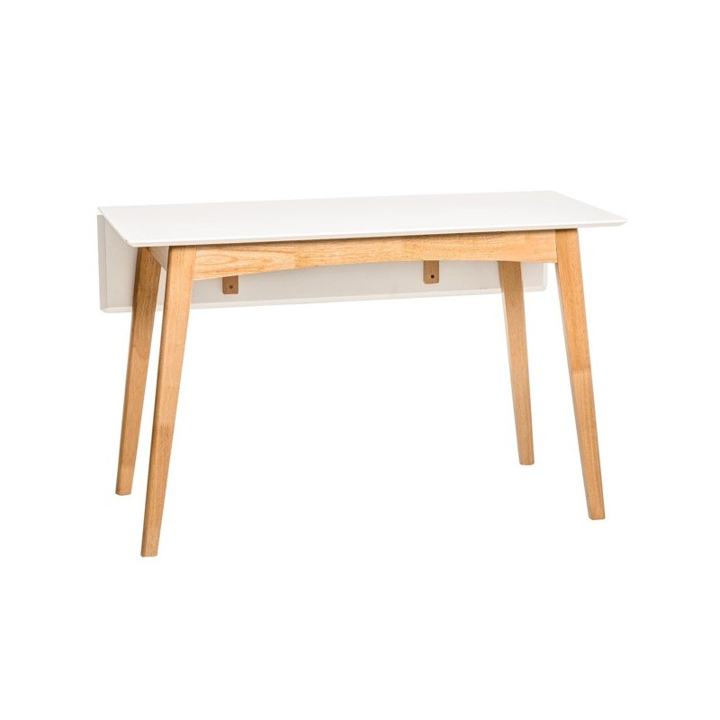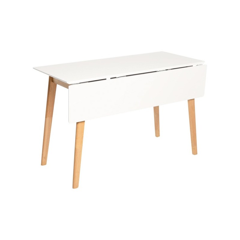 Découvrez la polyvalence et l'élégance de la table extensible TORI blanc/chêne, un meuble fonctionnel et moderne qui s'adapte à vos besoins. Avec un design unique et sophistiqué, cette table rabattable de 120x50 cm (75 cm de hauteur) se distingue par son plateau en MDF laqué blanc et ses pieds en bois d'hévéa, qui apportent durabilité et style à tout espace.