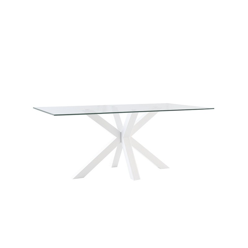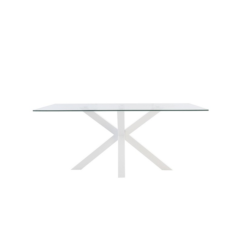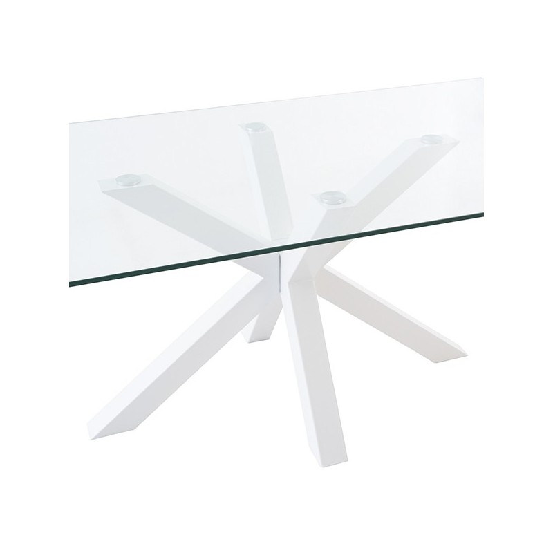 Table fixe DEMI 140 verre/blanc : élégante et résistante, idéale pour les espaces modernes. Dimensions 140x90 cm, allie verre et métal dans un design industriel.