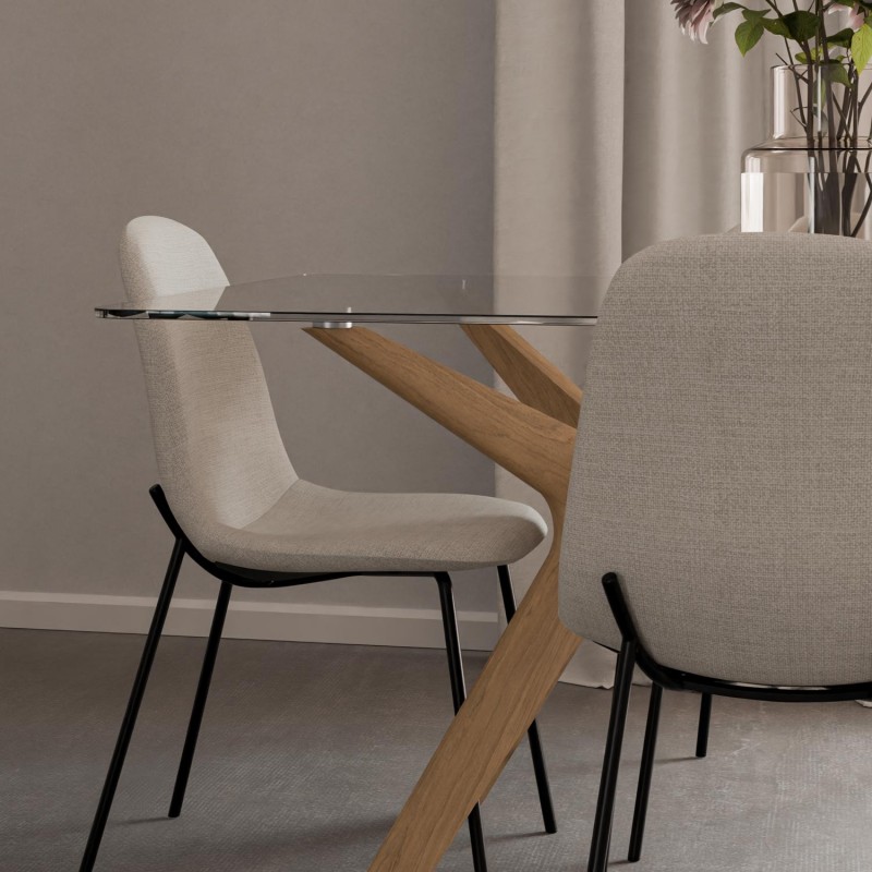 Table fixe DELLA 140 en verre et chêne : élégante, sophistiquée et fonctionnelle. Idéale pour apporter une touche d'originalité à votre maison.