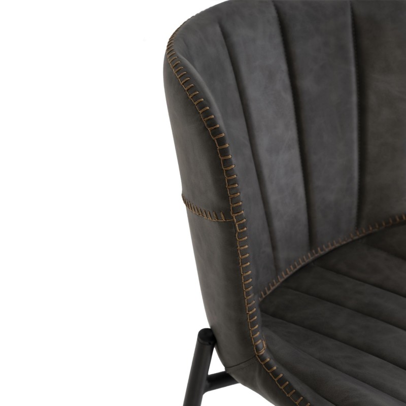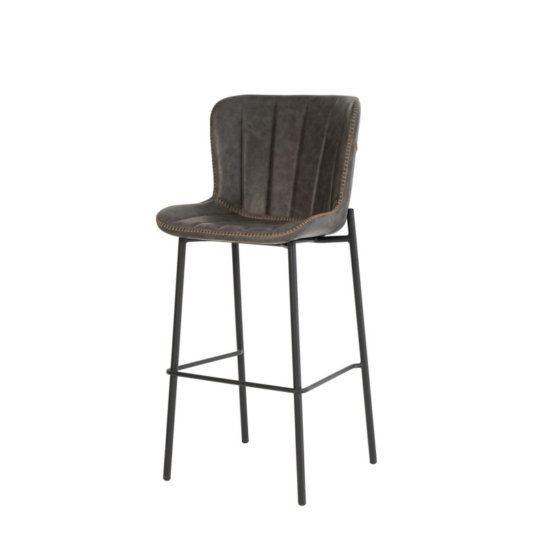 Tabouret haut Riley gris, combine design moderne et classique. Siège rembourré en similicuir gris avec passepoil, structure en métal noir mat. Idéal pour cuisines et bars.