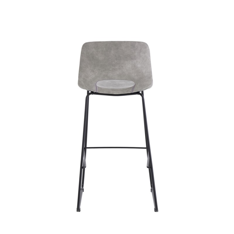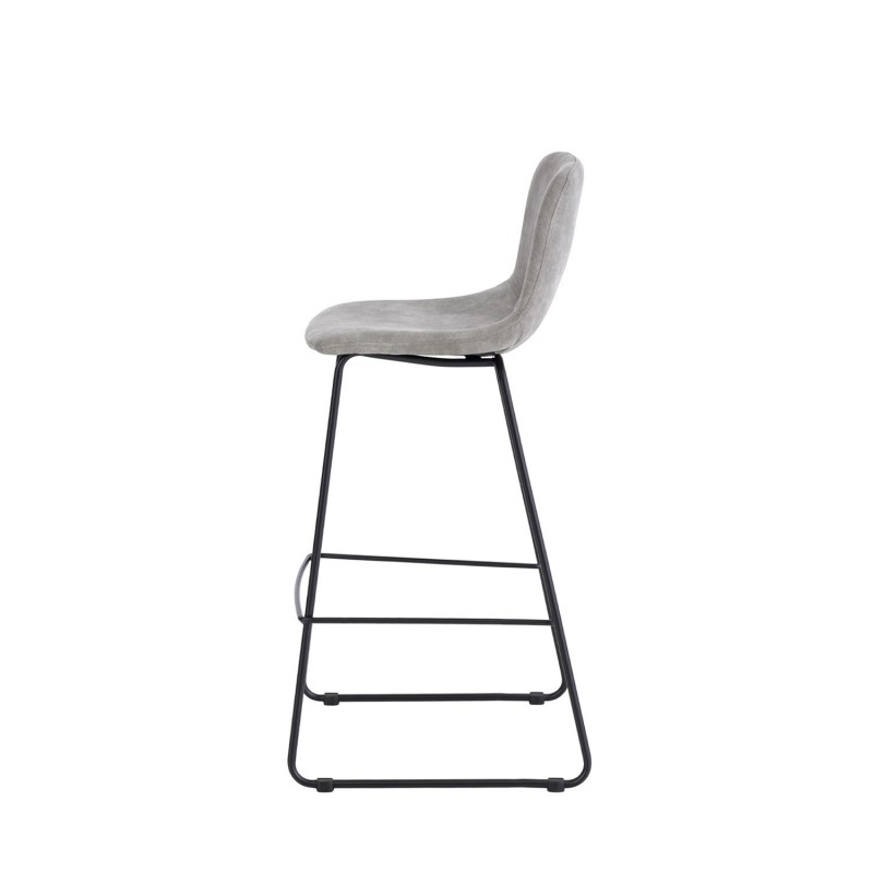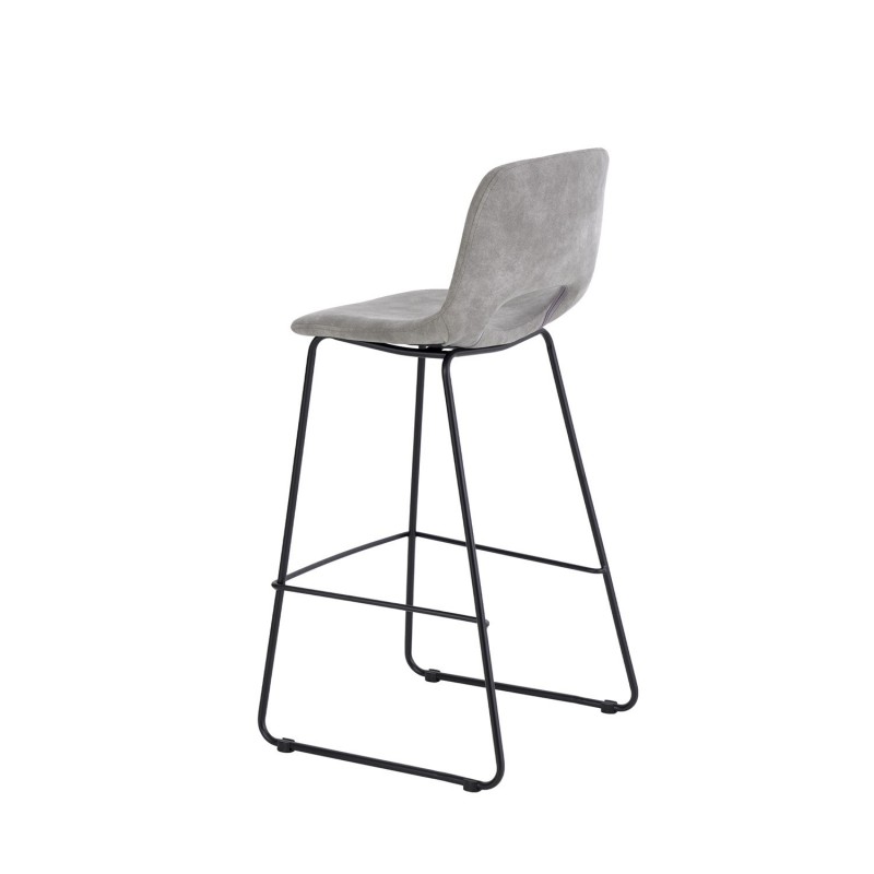 Tabouret haut ROWAN gris clair, idéal pour des espaces contemporains. Siège rembourré en similicuir gris, dossier ergonomique et pieds en métal modernes.