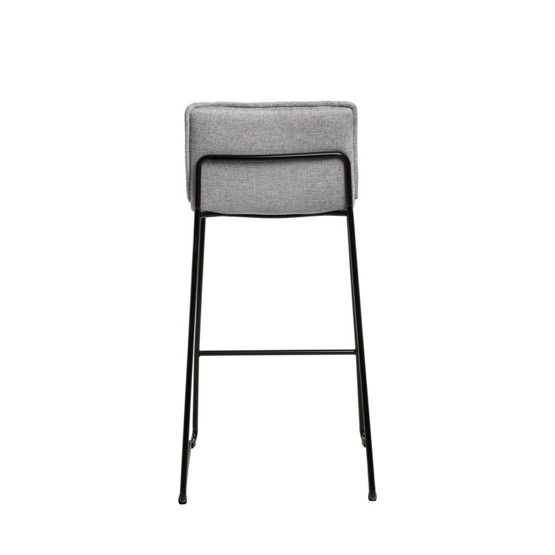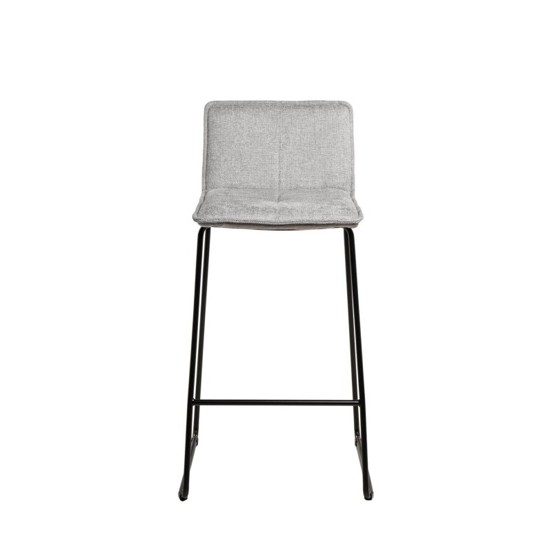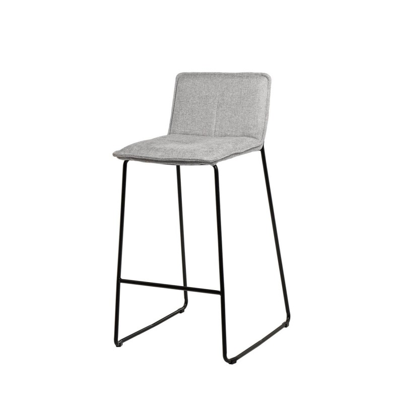 Tabouret haut ABOT gris clair, idéal pour les intérieurs contemporains. Structure robuste avec pieds en métal, revêtement en tissu et repose-pieds intégré.