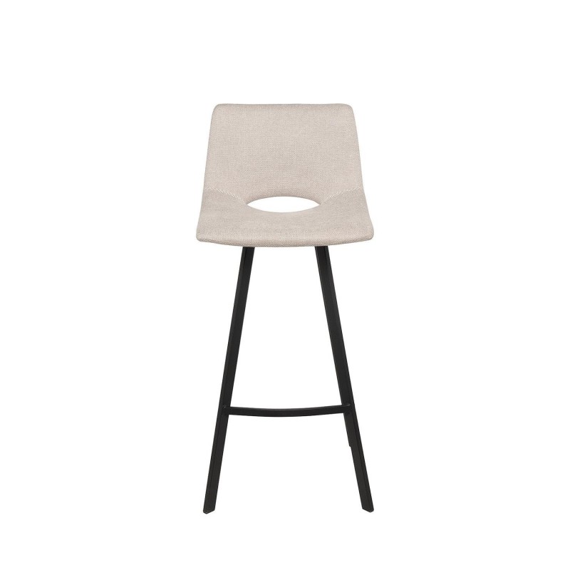 Tabouret haut ASTON beige, idéal pour les intérieurs contemporains. Structure en métal, revêtement beige et repose-pieds intégré pour plus de confort.