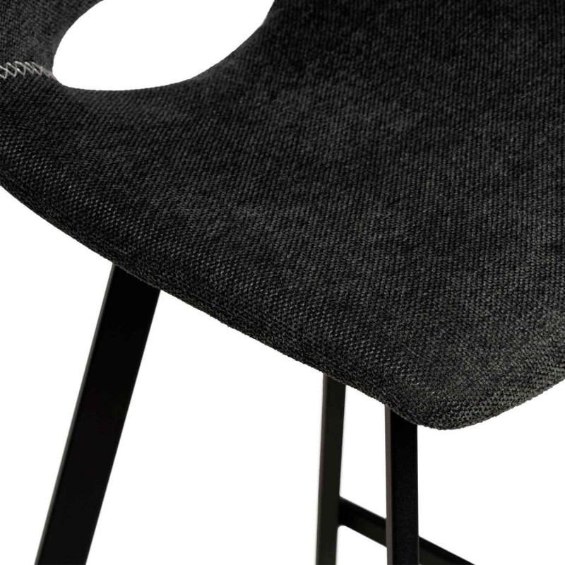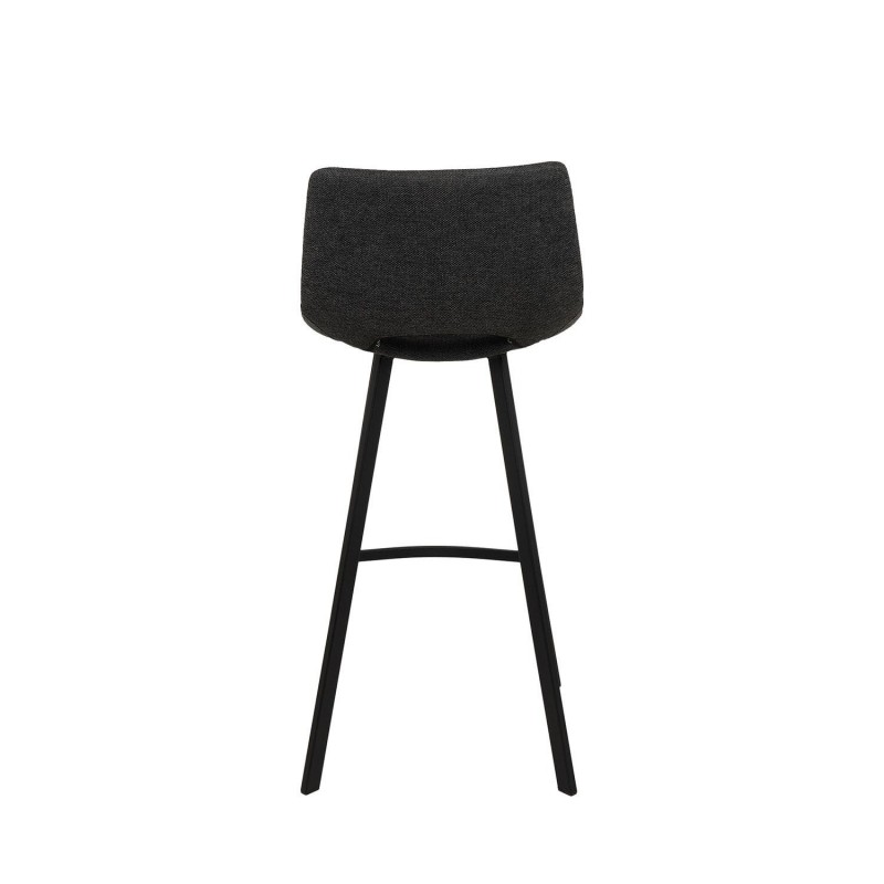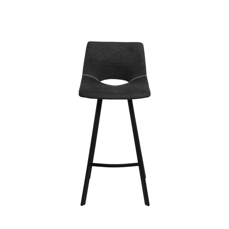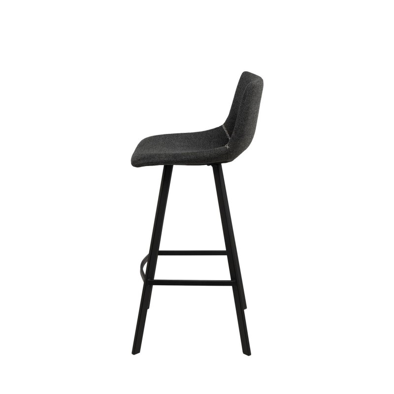 Tabouret haut ASTON gris foncé, idéal pour les intérieurs contemporains. Structure en métal, revêtement en tissu gris foncé et repose-pieds circulaire intégré.