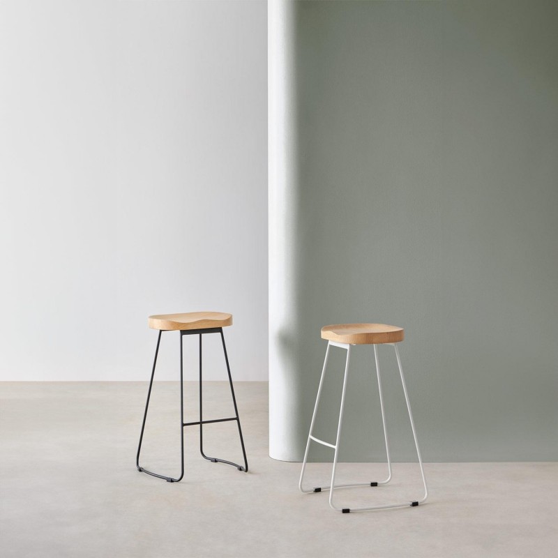 Tabouret sans dossier avec une assise concave en bois résistant pour plus de confort.