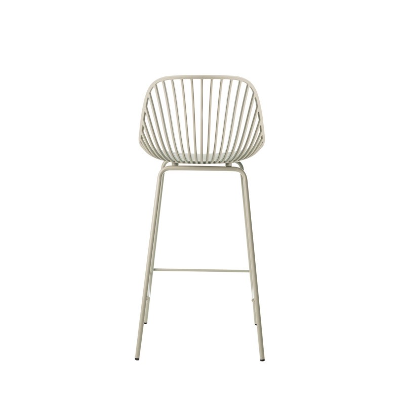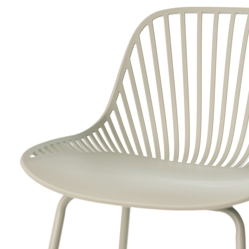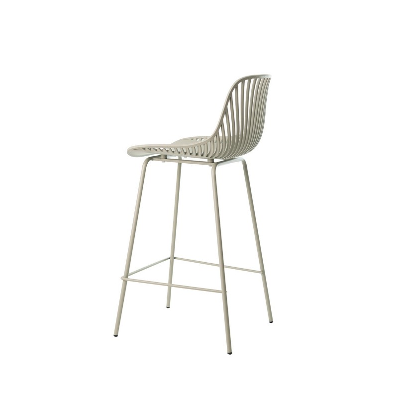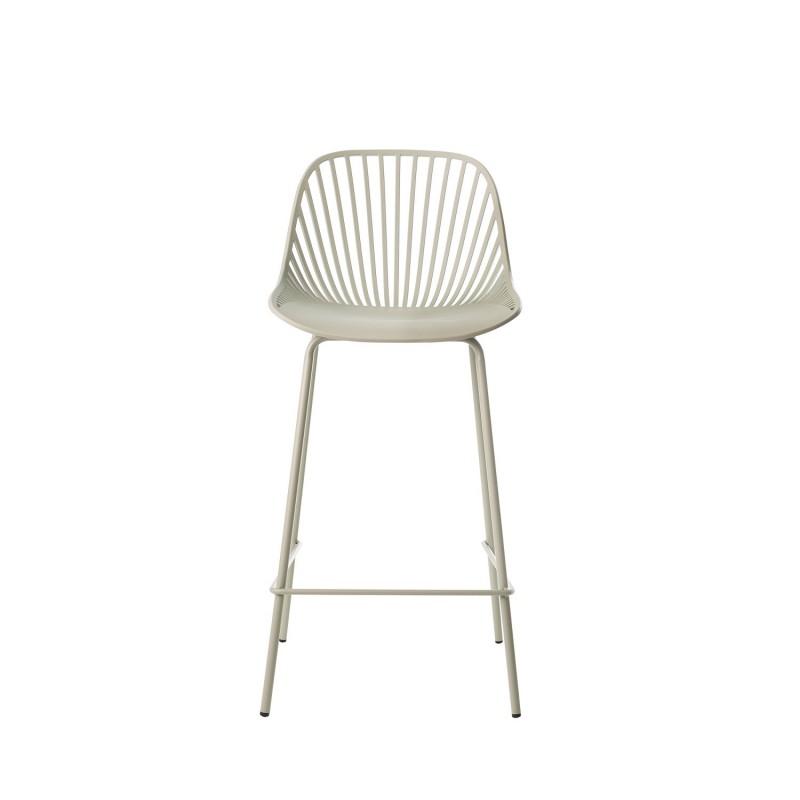 Tabouret bas PEYTON menthe : design original avec dossier à barres verticales, siège en polypropylène, pieds en métal laqué et repose-pieds. Style moderne et polyvalent.