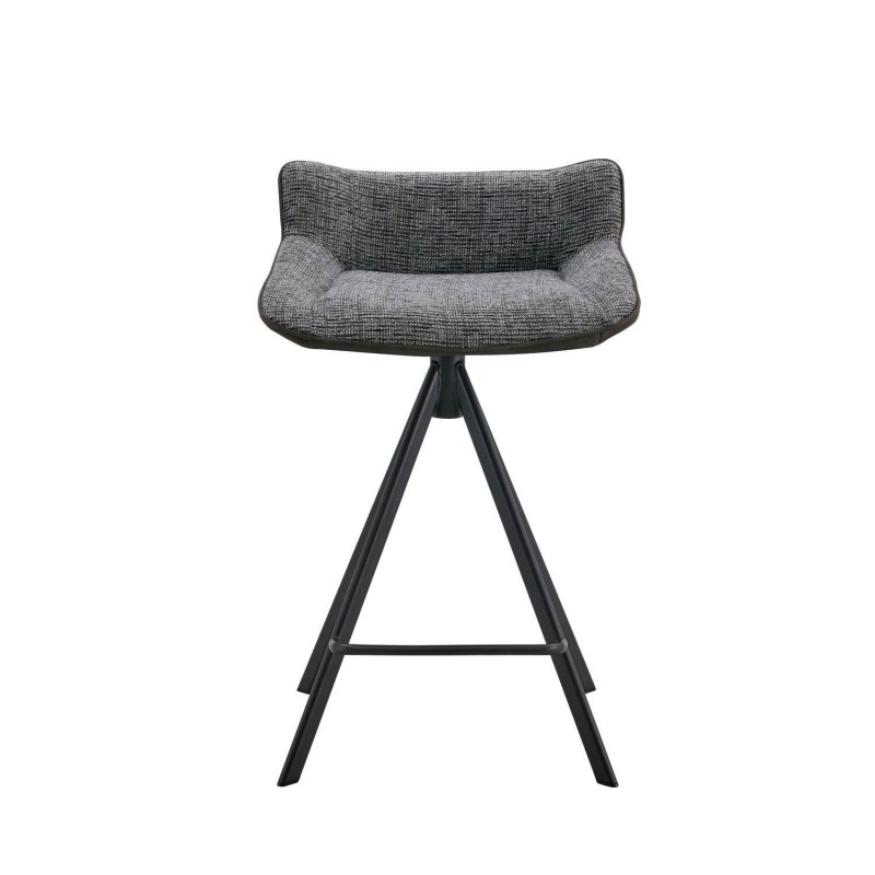 La base de ce tabouret est composée de pieds en métal noir légèrement inclinés vers l'extérieur, ce qui fournit une base solide et stable. Le repose-pieds ajoute non seulement une touche esthétique, mais renforce également la structure du tabouret, garantissant sa durabilité pour une utilisation quotidienne prolongée.