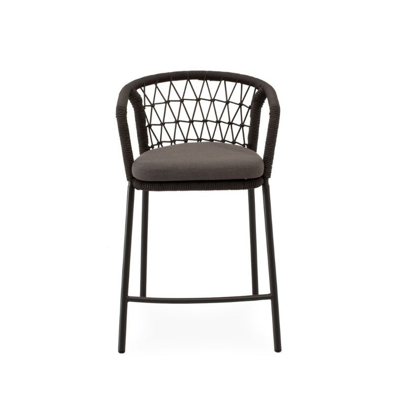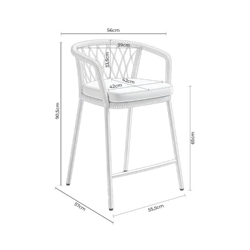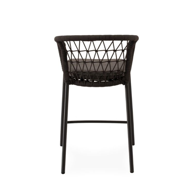 Le tabouret d'extérieur EDWIN combine élégance et confort avec un design conçu pour se démarquer. Son dossier incurvé, enveloppé de corde entrelacée, apporte une touche décorative subtile tout en offrant un soutien ergonomique qui enveloppe doucement le dos.