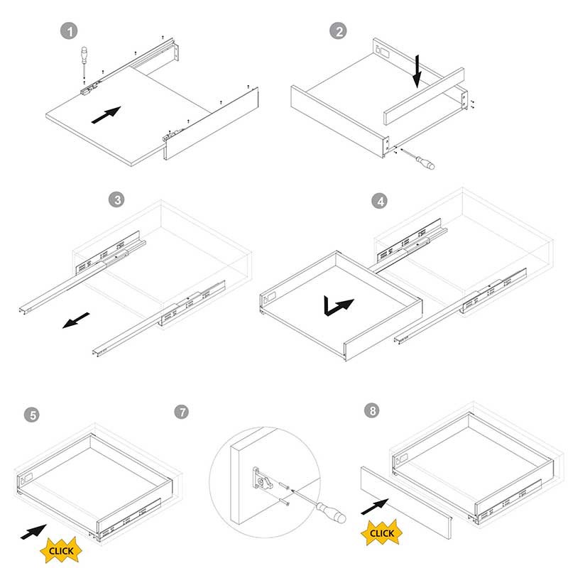 Important: Les tiroirs Sommet de Emuca sont conçus pour être installés dans des meubles ou une cuisine ou d'une salle de bains avec une épaisseur d'à côté de 16 mm.