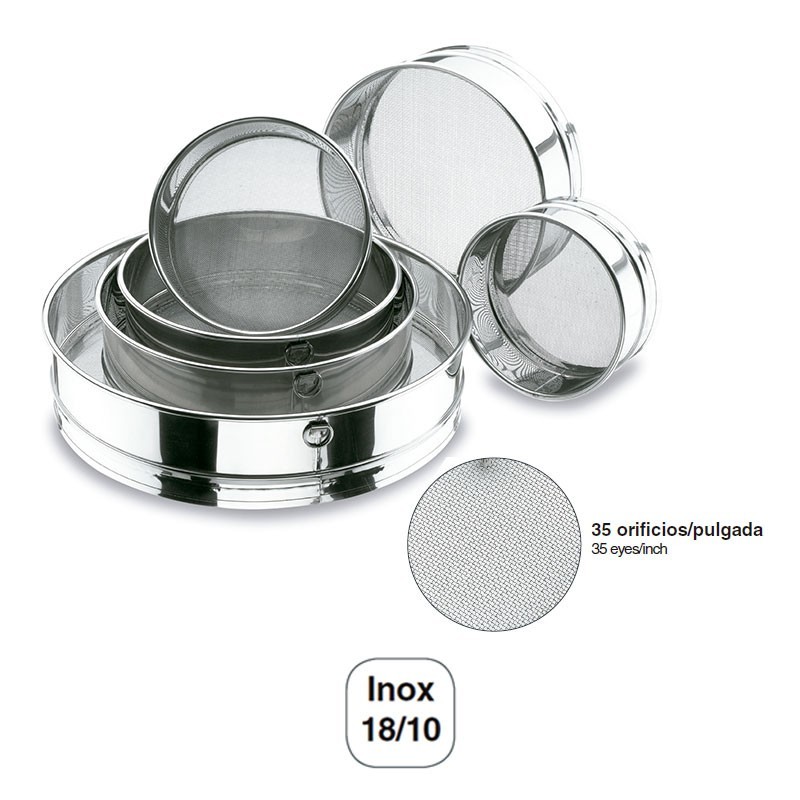 Prend un maillage construit à partir de 35 trous par pouce, ce qui nous permet de faire d'une amende de dépistage. En plus d'être utilisé pour tamiser les farines, la levure, ou d'autres produits similaires peuvent également être utilisés pour saupoudrer de cacao ou de sucre en poudre dans les recettes pour les produits de boulangerie.