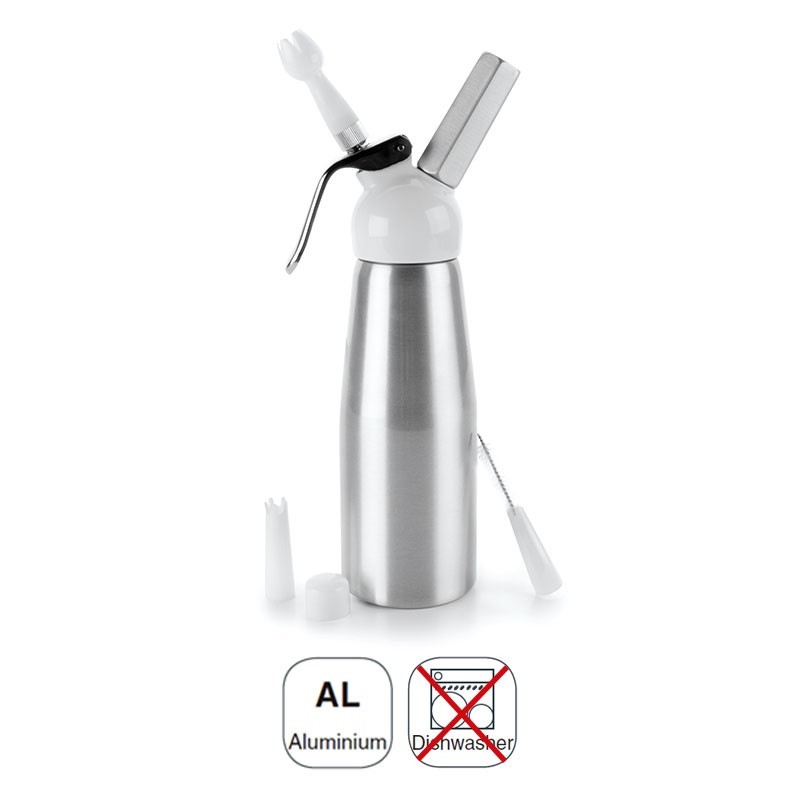 Bouteille siphon de N2O fait d'aluminium de haute qualité. Idéal pour la fabrication de mousses, crèmes, monté, souris, etc, Disponibles en différentes tailles.