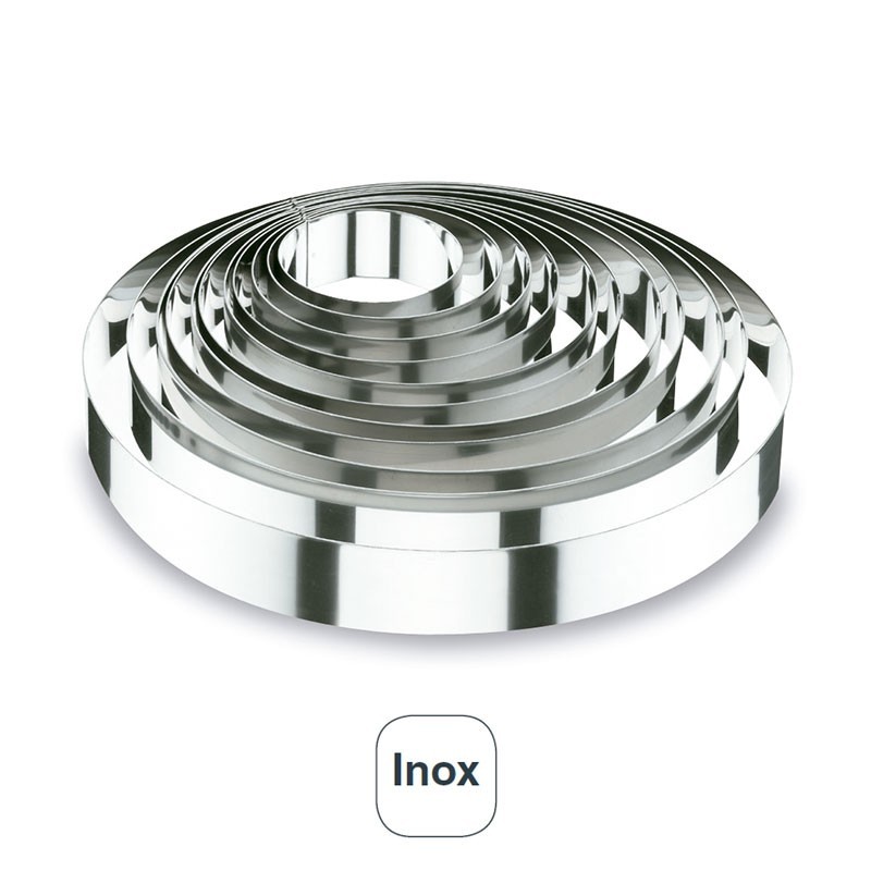 Bague ronde en acier inoxydable de 6 cm de hauteur pour servir des plats, des salades, des desserts, ou de monter des plats comme le steak tartare ou similaires. Disponible en différents diamètres.
