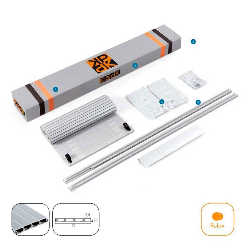 Le kit de volet roulant Servicanto de la gamme Rulox Basic disposent d'un système de compensation, de la chute de la lame. Le mécanisme comprend deux bandes indépendant assurer le bon fonctionnement et la durabilité de le volet.